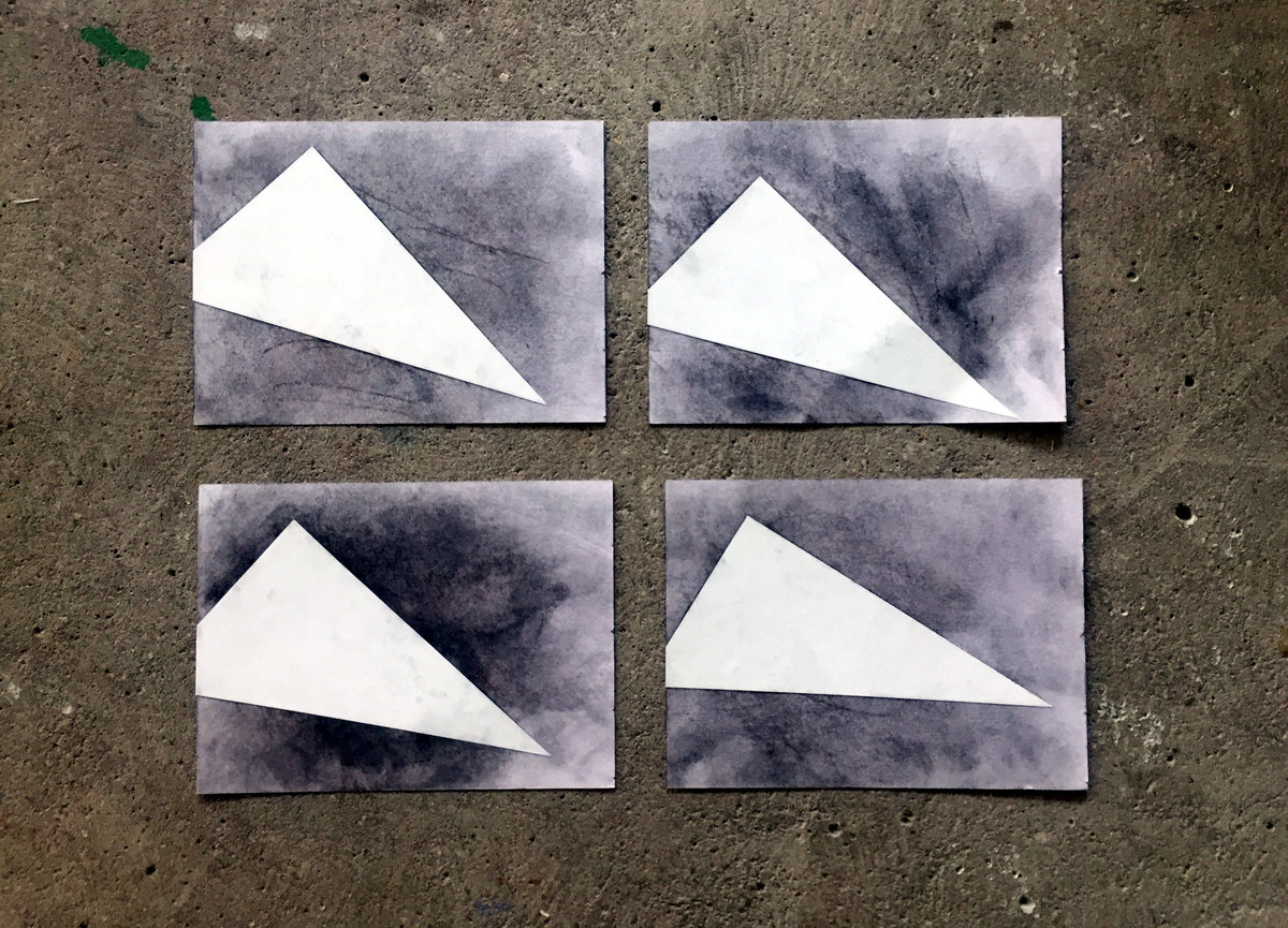 A unique "dirty postcard" with charcoal and adhesive vinyl will be included with the physical copy of the tape. These are the postcards which were used to create the photocopy collage making the front cover image.