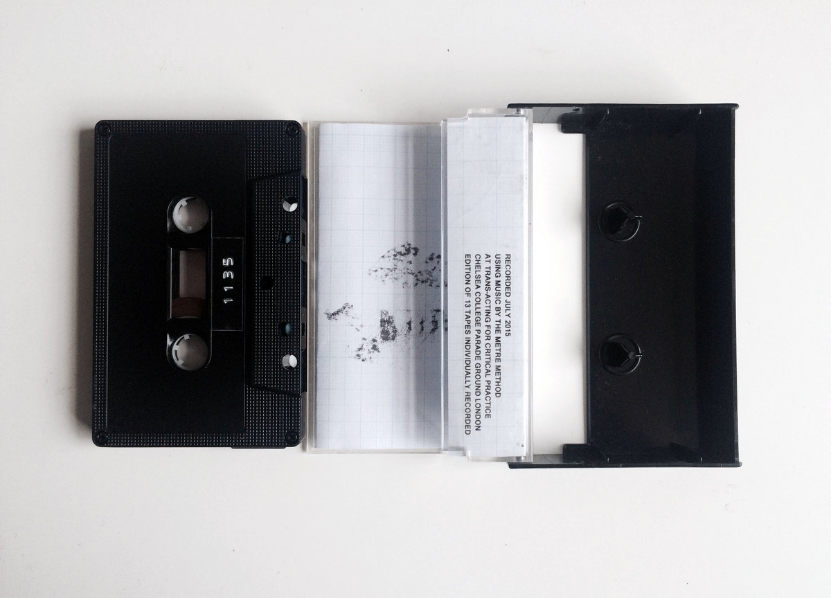 Each tape is labelled with the time at which the recording began. The cover is printed, with a rubbing of the tape label in charcoal. Each cassette comes with one free metre of music.